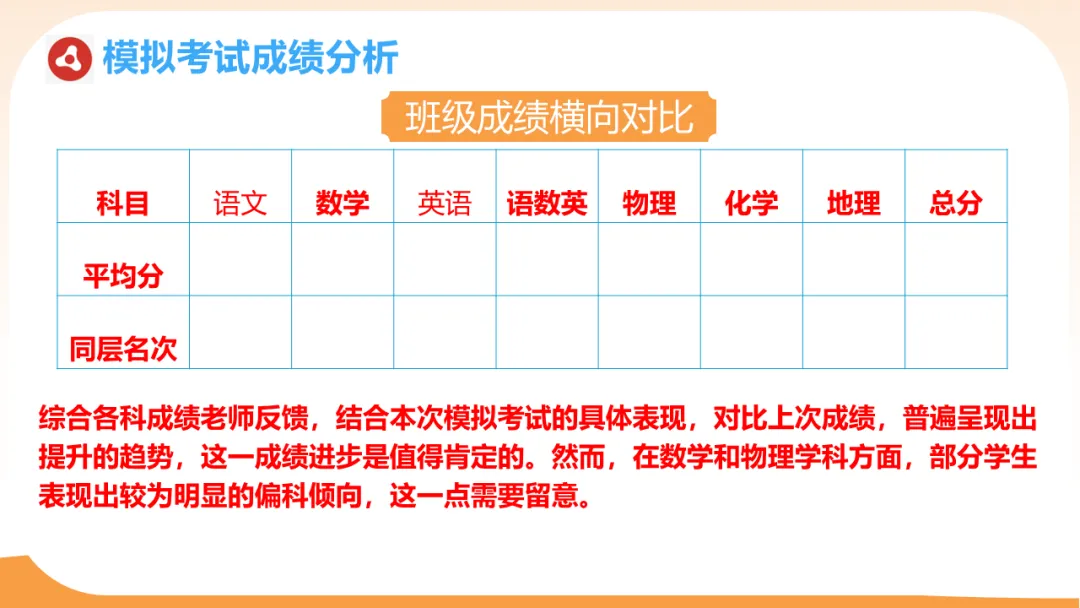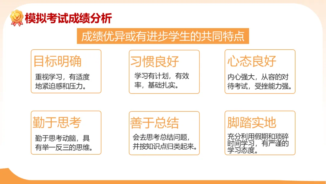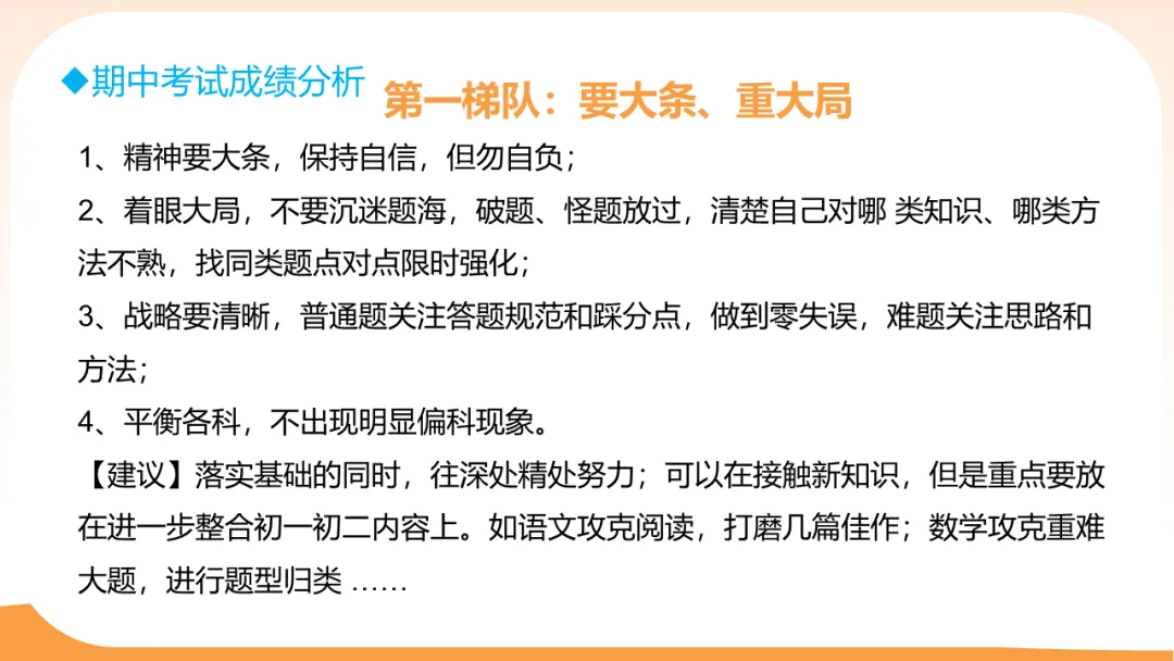 建议:精神要大条,着眼大局;平衡各科,不出现明显偏科
