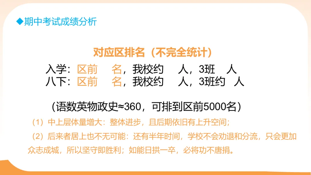 我让家长了解孩子成绩,是为了帮助大家了解现阶段孩子的真实水平,合理期待,对症下药,而不是让大家拿着成绩数落孩子。