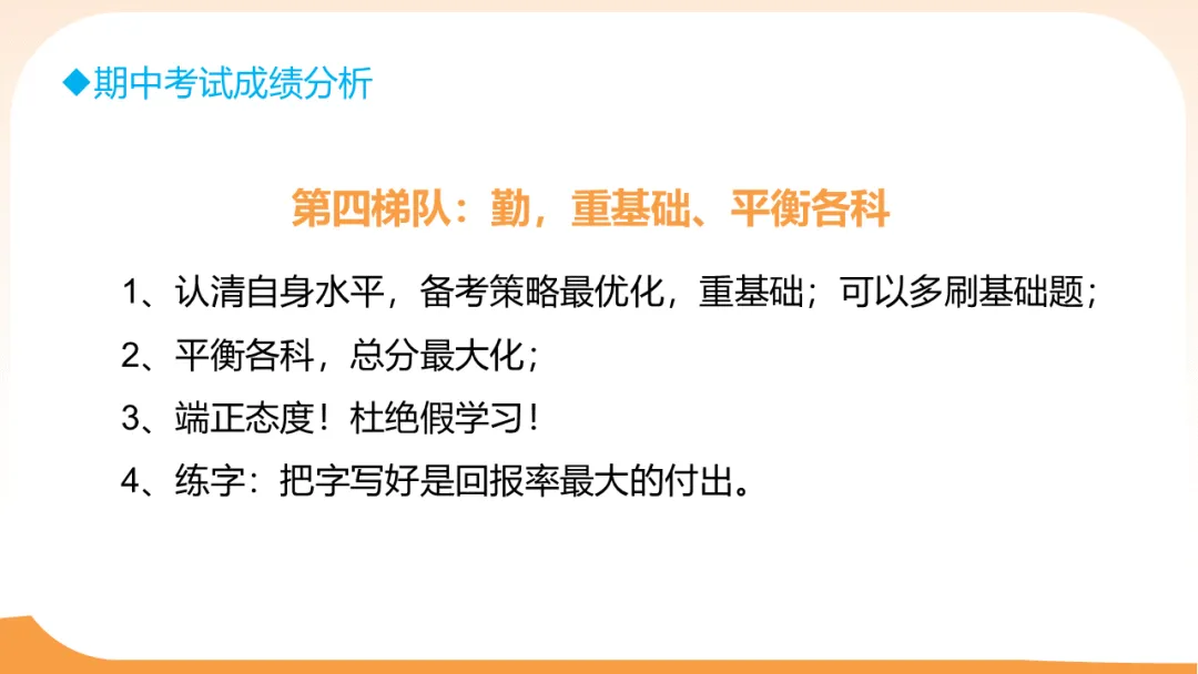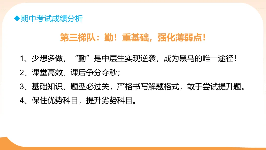 建议:“勤”是实现逆袭的唯一途径;课堂高效、课后争分夺秒