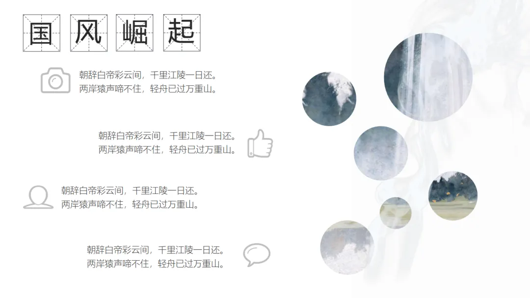 ✅ 全场景适配,实用性拉满:不管是国风主题汇报、文化分享会、艺术课程演示,还是毕业答辩、企业年会开场,甚至是个人日常的山河旅行分享,用它都能hold住,瞬间提升演示质感;