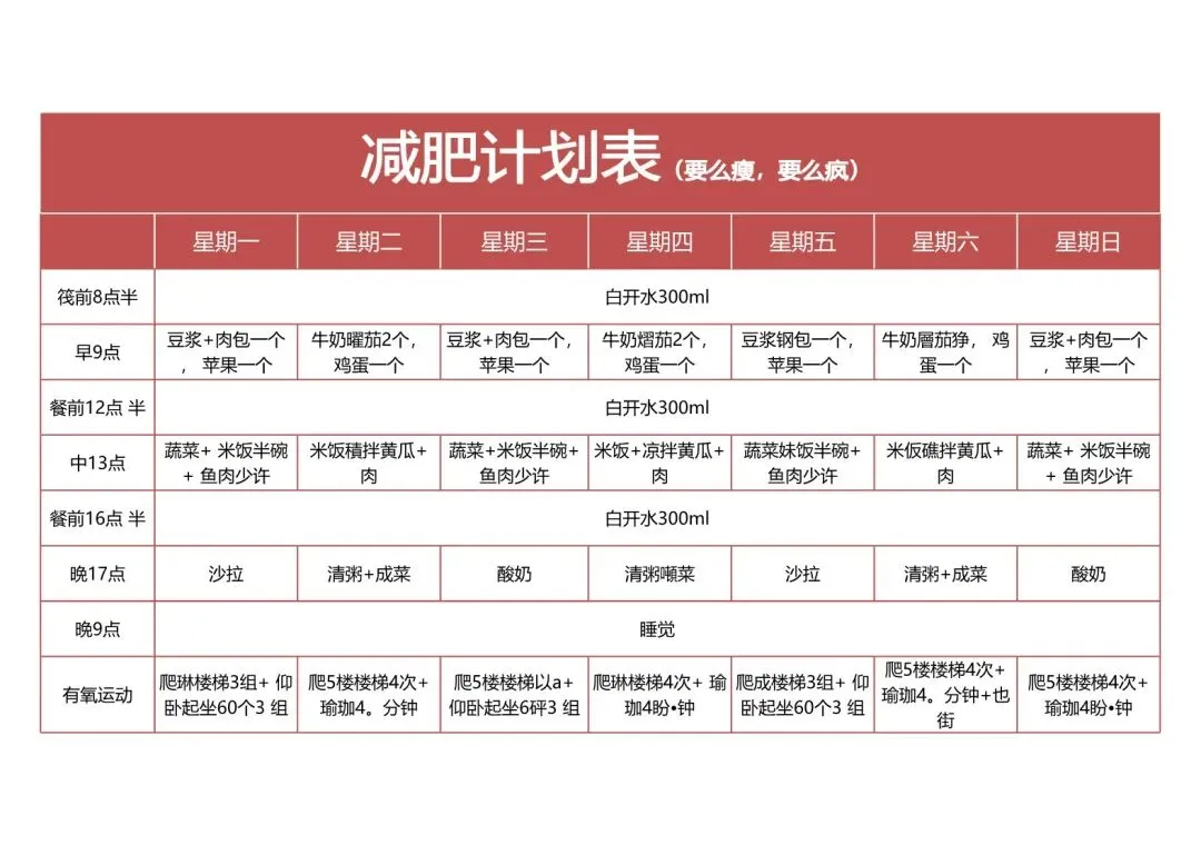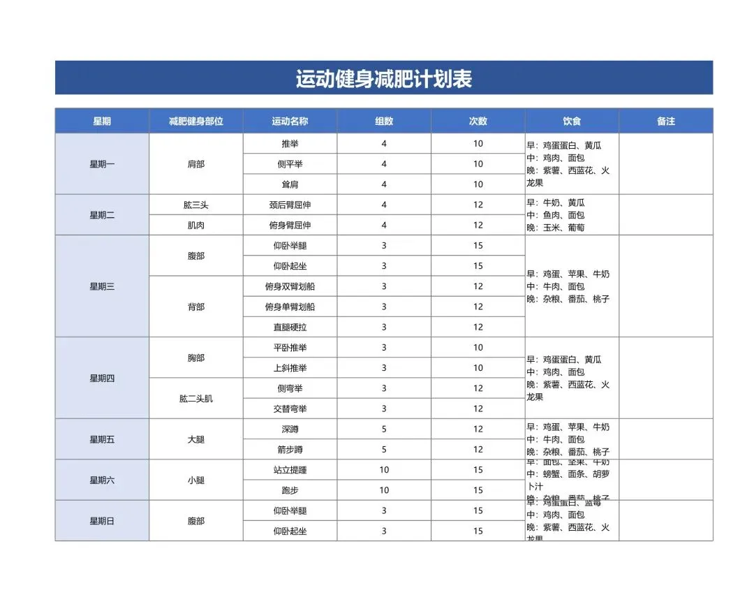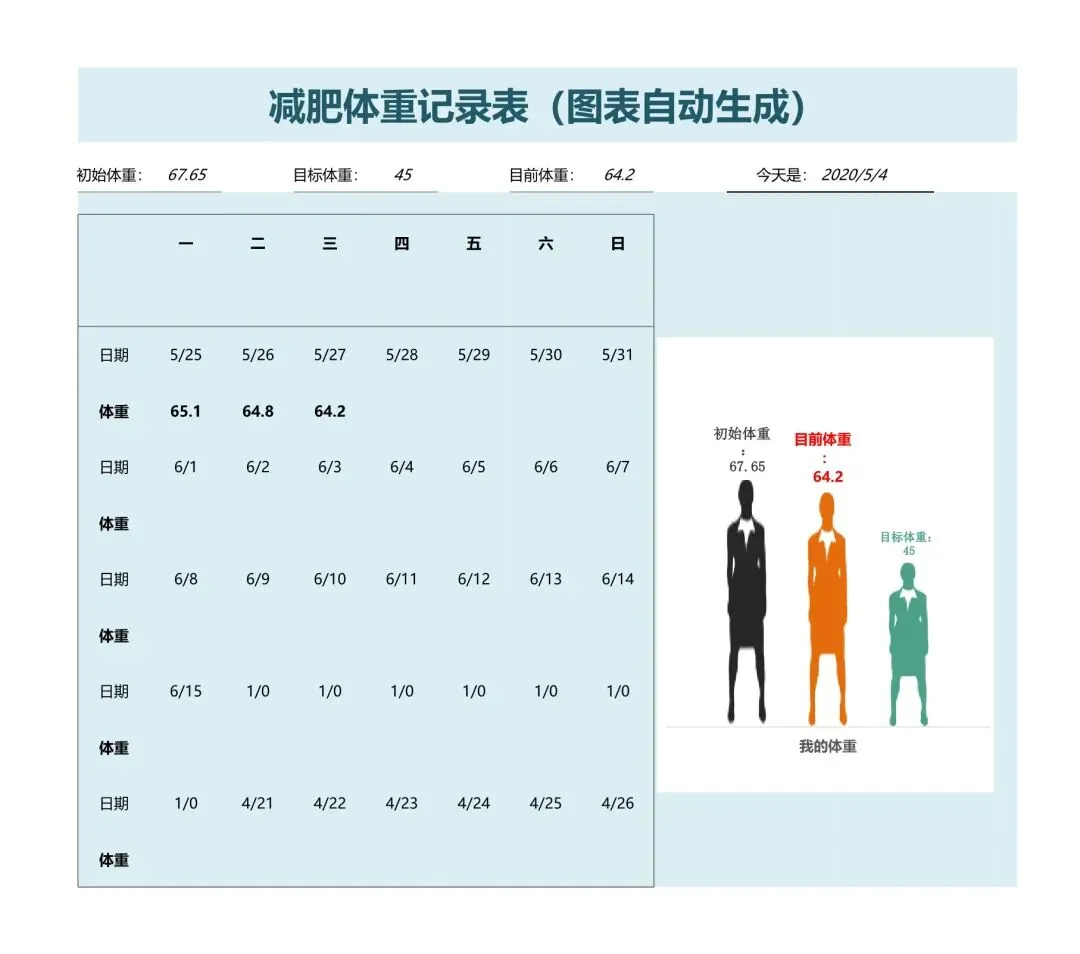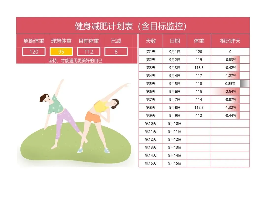 减肥计划表!饮食健身体重管理记录表,Excel电表格电子版!