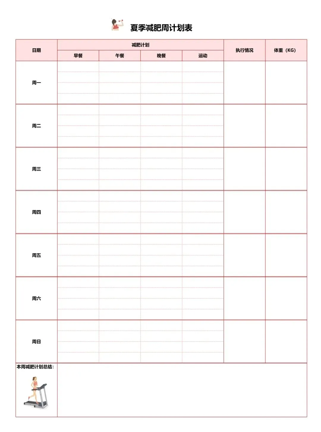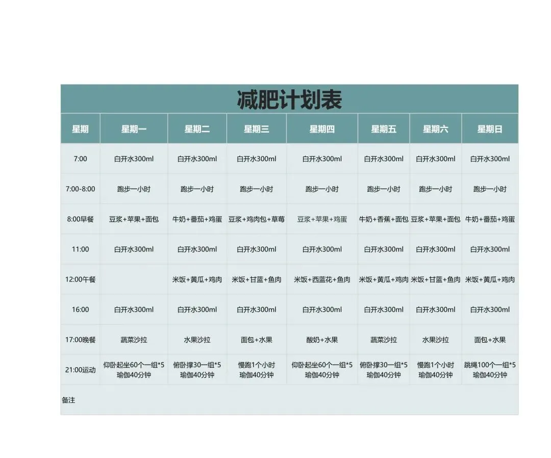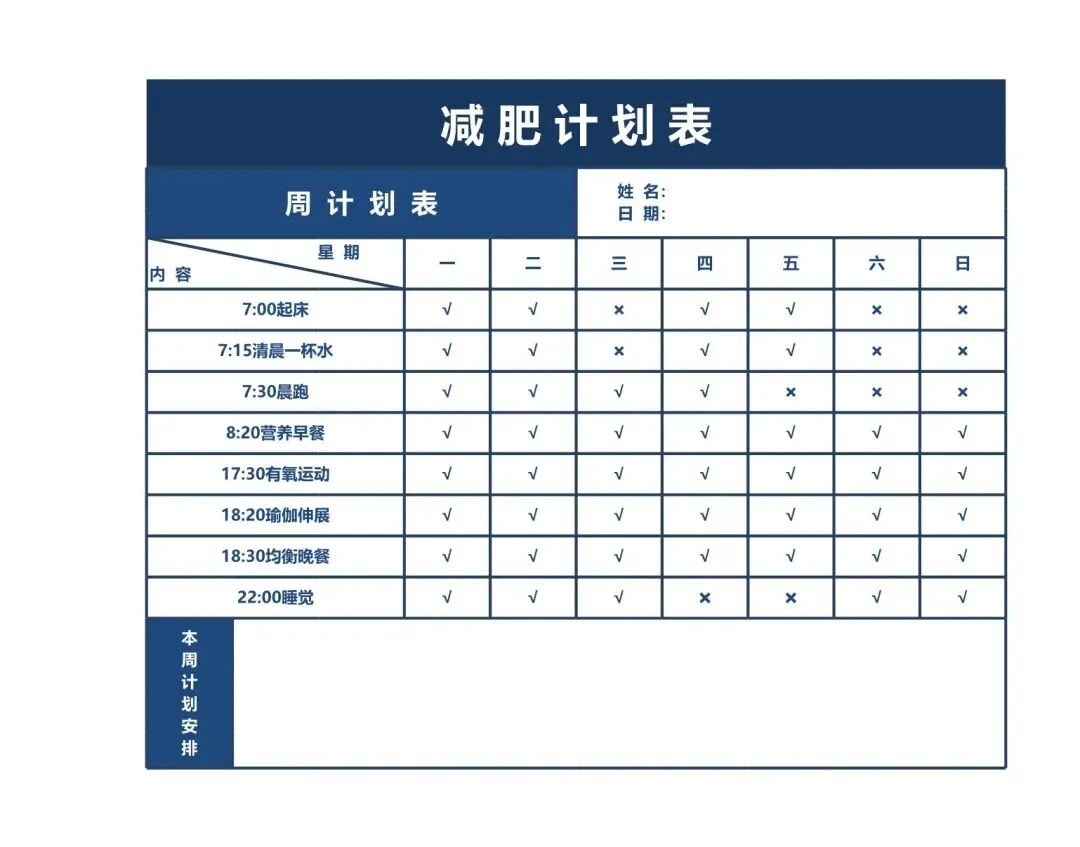 减肥计划表!饮食健身体重管理记录表,Excel电表格电子版!
