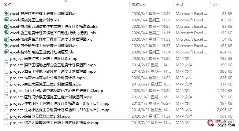 19个施工进度计划横道图样板丨Excel、project
