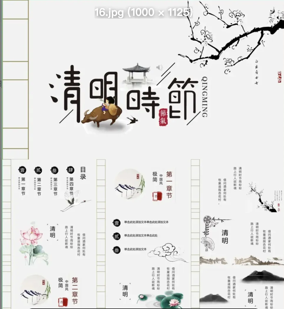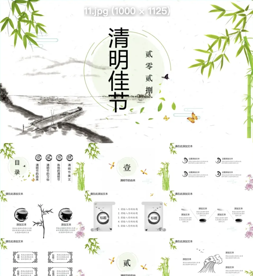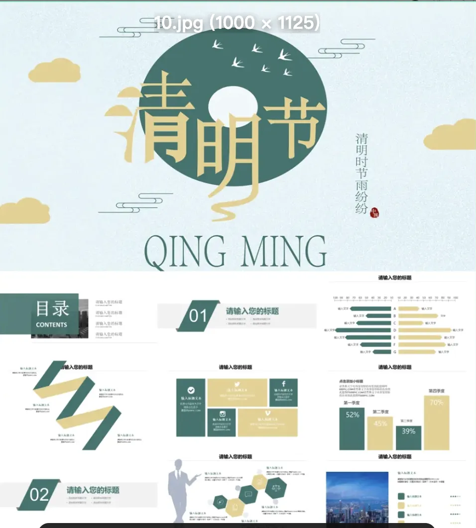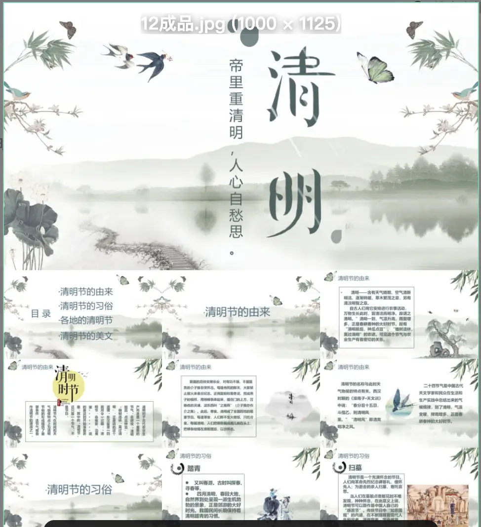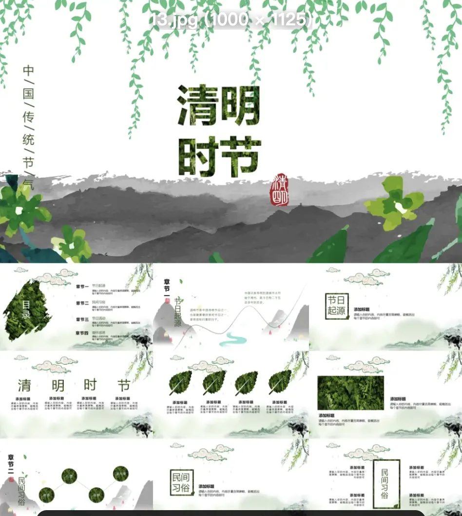 本文分享的是「清明节ppt模板,只有部分预览图,更多的点击链接」