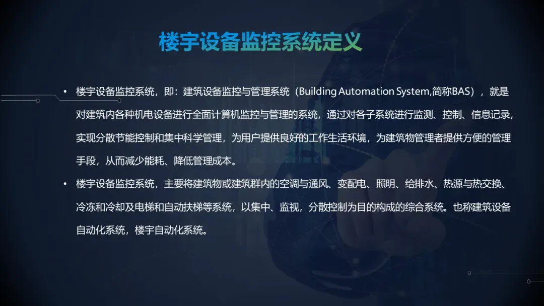 楼宇设备自控系统也称BA系统,本期我们通过一份ppt来详解这块的内容。