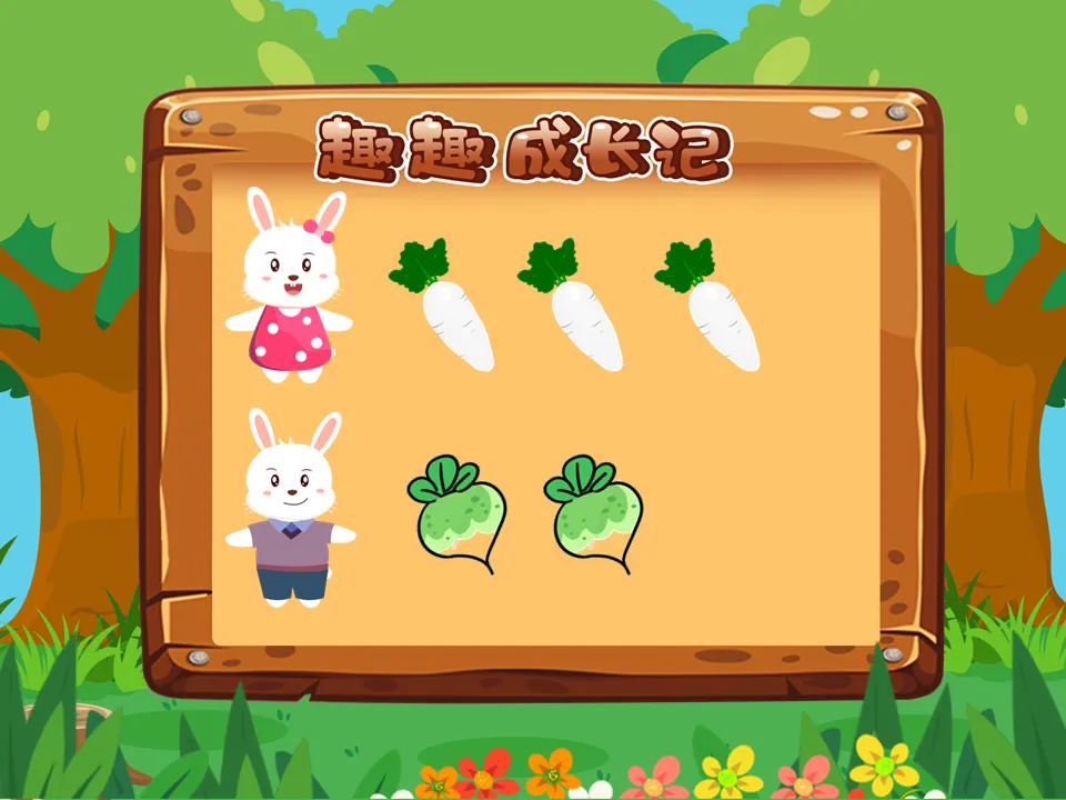 活动过程: 一、情境导入,尝试运用一一对应、点数的方法数萝卜 1.出示兔妈妈家图片,引出兔妈妈家拔萝卜的情境。 教师:叮叮叮,幼儿园的邮箱里来了一封神秘的信(出示信件并打开)。你们猜是谁寄来的呢?原来呀,是兔妈妈种了好多萝卜,可是兔妈妈一个人来不及拔。她想邀请小朋友们来帮她拔萝卜,你们愿意帮助兔妈妈一起拔萝卜吗? 2.体验情境拔萝卜,尝试运用一一对应、点数的方法数萝卜 教师引导语:拔呀拔,一下子拔到了好多萝卜 教师:小朋友们,你们拔到萝卜了吗?数一数你拔了几个萝卜?你是怎么数的呀? 幼儿:2个;3个;5个。 教师:你是一个萝卜一个萝下地数;你是拿一个萝卜数一个;你是用手指点着萝卜数等。 小结:小朋友们真能干,每一个小朋友都拔到了好多萝卜。在拔萝卜的过程中,小梁老师注意到,很多小朋友是通过用手指点着萝卜数的方法来数萝卜,这个方法呀又快又准。 二、操作感知,运用一一对应的方法比较多少 1.幼儿初次尝试比较萝卜的多少(7-8min) 教师引导语:可是兔妈妈院子里的萝卜还是太多了,于是兔妈妈又邀请兔爸爸来帮忙。小朋友们,你们猜一猜,兔妈妈拔得多还是兔爸爸拔得多呢? 幼儿:兔爸爸;兔妈妈;兔宝宝。 教师:先别着急,我们把答案藏在手心里。 教师:你们各有各的猜测,我们一个对着一个来看,仔细看哦,你发现了什么? 教师:兔妈妈一个兔爸爸一个,兔妈妈一个兔爸爸一个,兔爸爸已经没有萝卜了,兔妈妈还有一个萝卜,说明兔妈妈拔得萝卜比兔爸爸多。 2.幼儿再次尝试比较萝卜的多少 教师:休息了一会,兔妈妈和兔爸爸又开始拔萝卜了。这一回你们猜兔妈妈拔得多还是兔爸爸拔得多呢? 教师:我要请安静的小朋友来说,她能把答案藏在手心里,我要请他来来回答。 幼儿:兔爸爸拔得多,她没有萝卜了,兔爸爸还有萝卜。 幼儿:兔爸爸有4个,兔妈妈有2个。 教师:你能用小梁老师的方法来说一说吗? 教师小结:兔妈妈一个兔爸爸一个,兔妈妈一个兔爸爸一个,兔妈妈已经没有萝卜了,兔爸爸还有两个,说明兔爸爸拔得萝卜比兔妈妈多。 3.尝试比较两组萝卜一样多 教师:刚刚兔妈妈和兔爸爸已经拔了2次萝卜了,累得不行了(手擦汗动作),他们决定最后再拔一次萝卜。兔妈妈和兔爸爸又开始拔萝卜了,你们猜兔妈妈拔得多还是兔爸爸拔得多呢? 幼儿:有6个萝卜 教师:是的,一共有6个萝卜,兔妈妈有3个,兔爸爸也有3个。 幼儿:一样多,都有3个萝卜。 教师:兔妈妈一个兔爸爸一个,兔妈妈一个兔爸爸一个,兔妈妈已经没有萝卜了,兔爸爸也没有萝卜了,说明兔爸爸拔得萝卜和兔妈妈一样多。 小结:兔妈妈拔了三个萝卜,兔爸爸拔了两个萝卜,兔妈妈拔得萝卜多。兔妈妈拔了两个萝卜,兔爸爸拔了四个萝卜,兔爸爸拔得萝卜多。兔妈妈拔了三个萝卜,兔爸爸也拔了三个萝卜,他们拔的萝卜一样多。 三、观察萝卜的异同,尝试分类并比较数量的多少 教师:小朋友们,刚才我们拔了萝卜,你们有没有发现这些萝卜有点不一样呢?你发现了几种萝卜? 幼儿:颜色不一样;形状不一样。 小结:原来这里有白萝卜、红萝卜、紫萝卜、绿萝卜。我们把一样的萝卜放在一起吧。比一比,哪一种萝卜最多呢?请你们来仔细观察一下。 小结:原来白萝卜、红萝卜、紫萝卜一样多,都有5个,绿萝卜最少,只有3个。 四、操作练习,强化思维 1.幼儿根据篮子底部的数字,取相应数量的萝卜,并比较多少 教师:叮叮叮,幼儿园的邮箱里又来了一封神秘的信(出示信件并打开)。兔妈妈太感谢小朋友们帮她拔了好多萝卜,她想要把这些大萝卜送给小朋友们吃。这么多品种的萝卜,你喜欢吃哪一种呢? 教师:老师已经在后面桌子上,分别放了4个标有不同圆点的冰格。请你根据圆点的数量取出萝卜。在取萝卜的过程中,也要请你保持安静,这样才能取到萝卜噢。取完萝卜就请你安静的回到位置上享用萝卜吧。 |