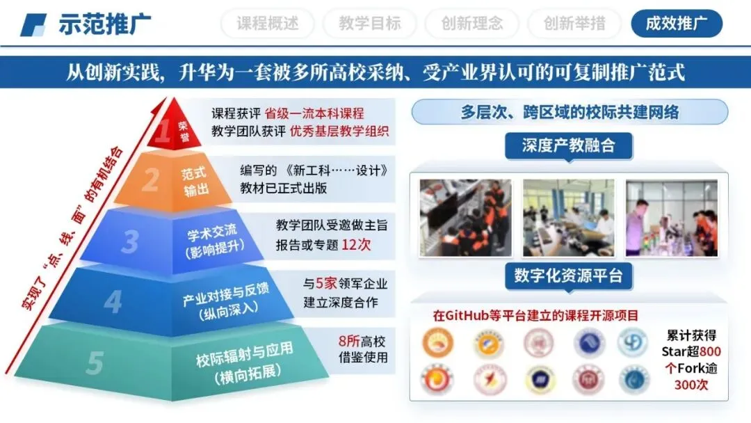 推广辐射:12次受邀报告、5家领军企业合作、8所高校借鉴、GitHub超800星——影响力外溢