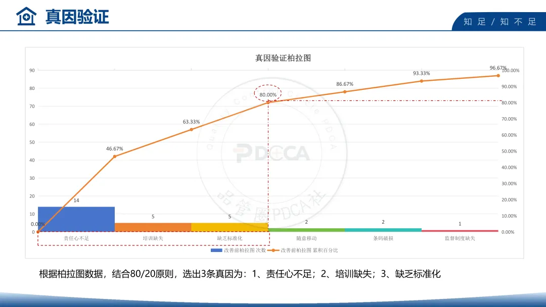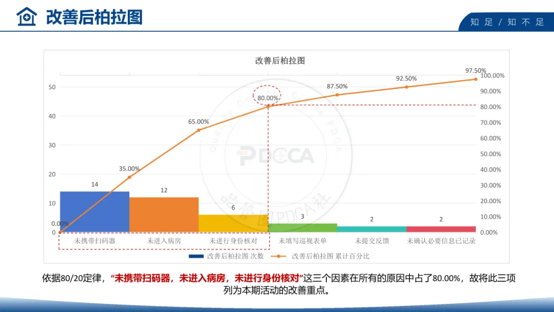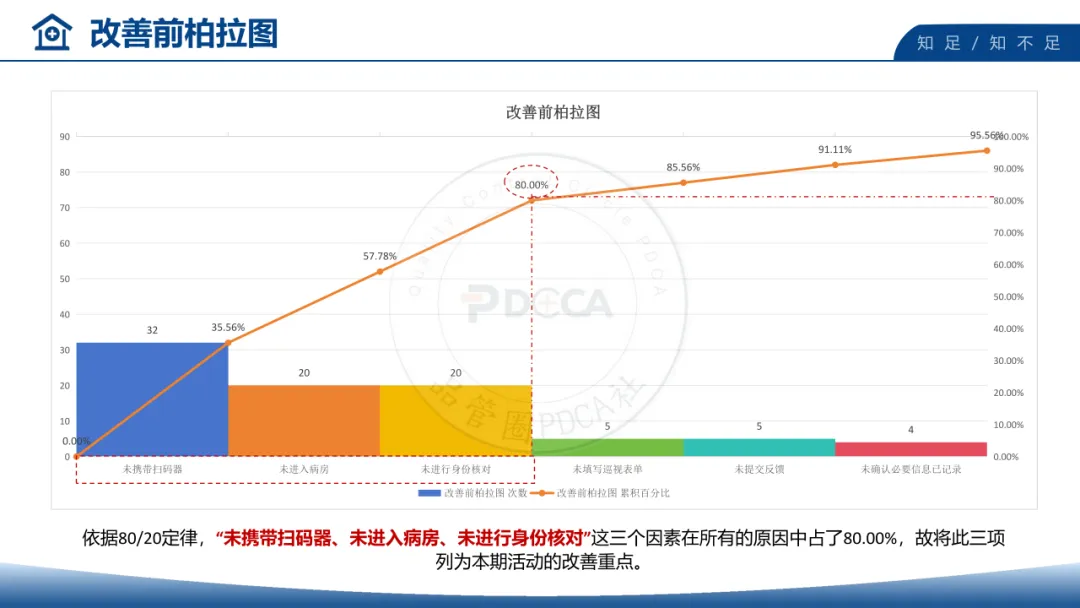 项目组通过现状调查与柏拉图分析,精准锁定三大核心因素,占未扫码原因的80.00%: