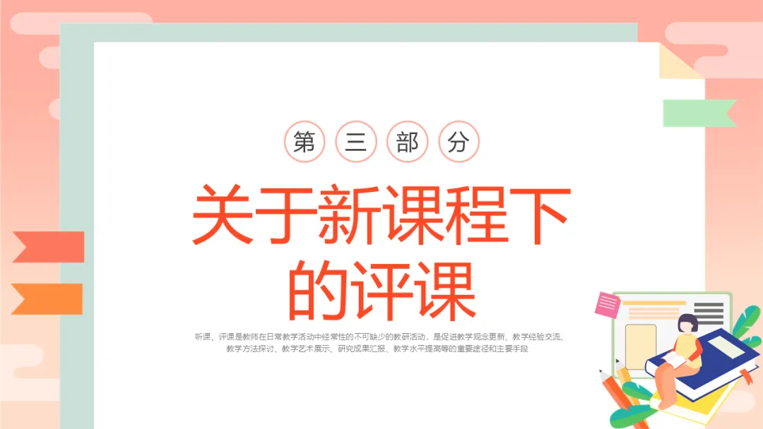 听课、评课是教师在日常教学活动中经常性的不可缺少的教研活动,是促进教学观念更新、教学经验交流、教学方法探讨、教学艺术展示、研究成果汇报、教学水平提高等的重要途径和主要手段,本期给大家分享的是新课程背景下教师如何听课评课ppt课件。