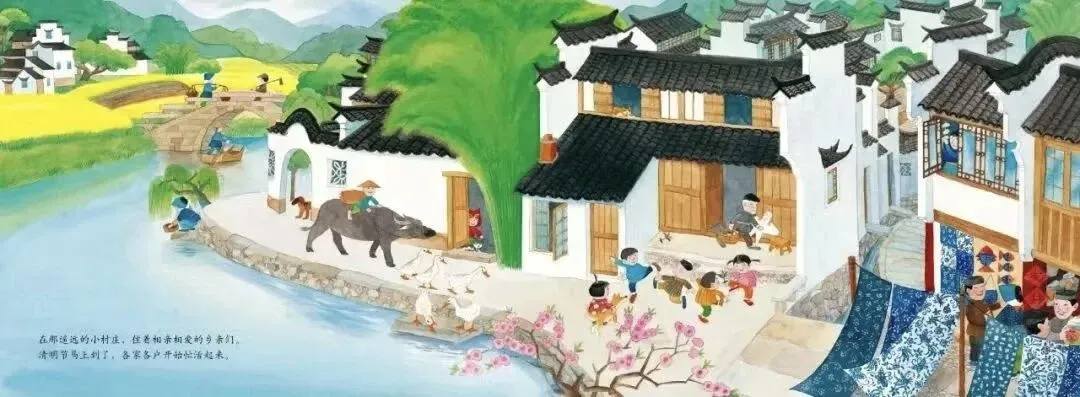 远处隐隐约约传来了歌声:“清明清,去踏青,青团青酒寒食兴。祭祖野餐插新柳,飘落春雨轻又轻。”