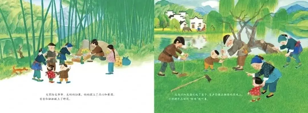 绘本用细腻画面传递清明习俗、祖孙亲情、邻里温情,让孩子在美食与陪伴中理解传统节日的意义 。