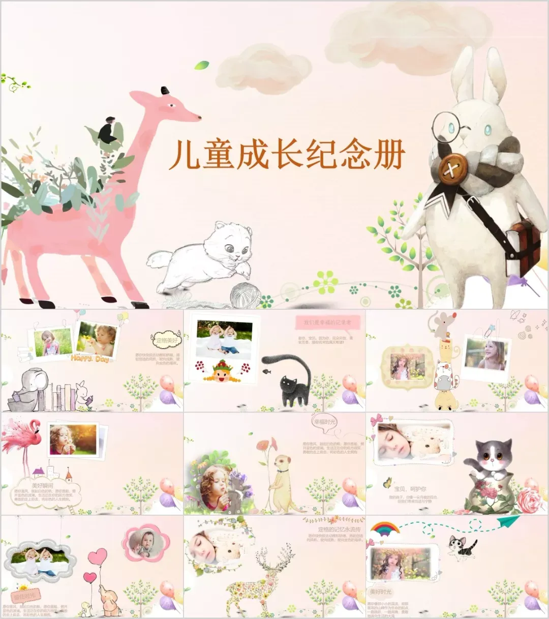 色调都是小孩喜欢的,加上各种动漫、小动物的卡通元素,十分纯真可爱。而且风格多样,系列搭配,用时只需修改文字即可,操作十分简单。
