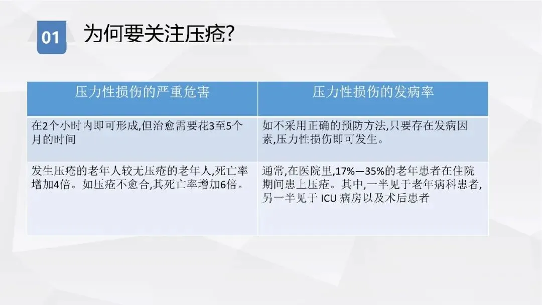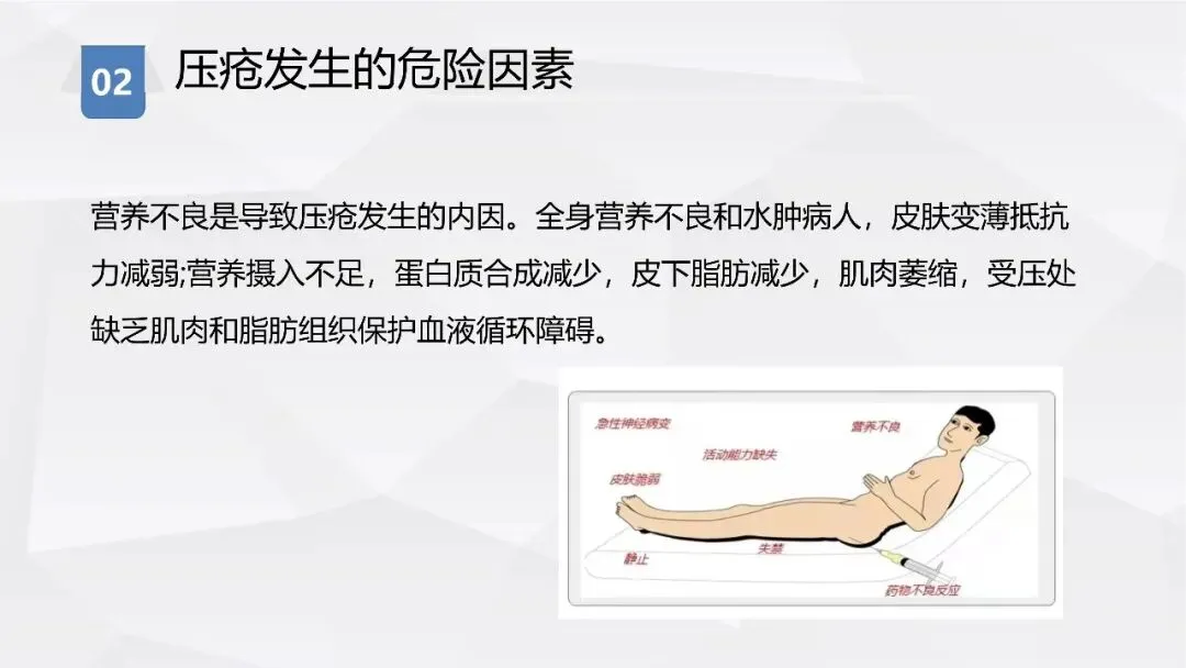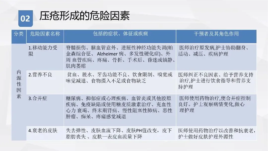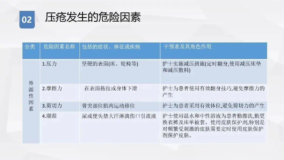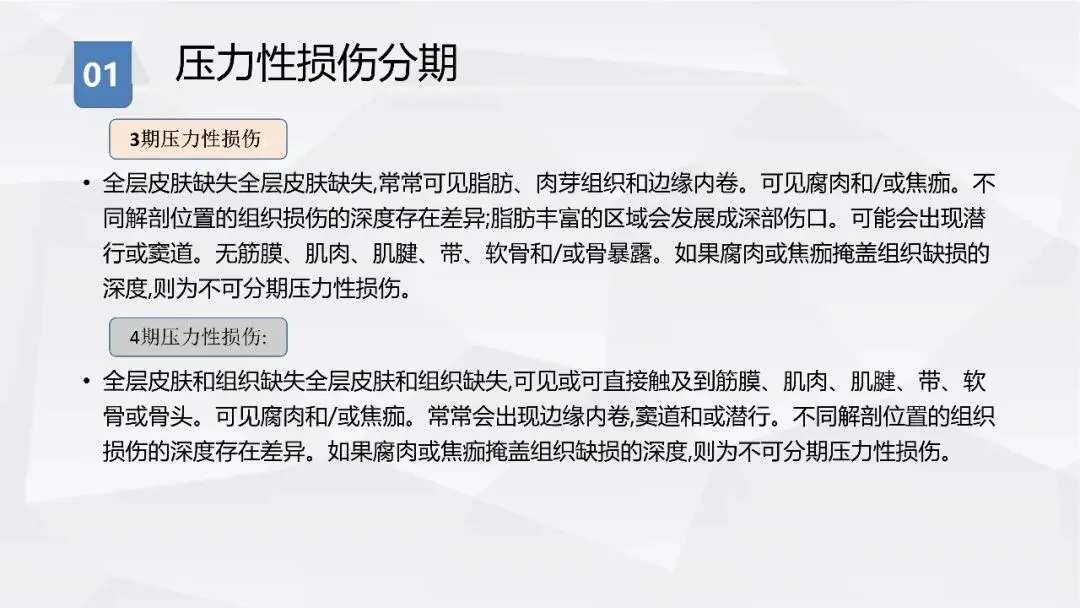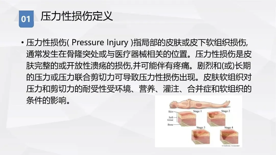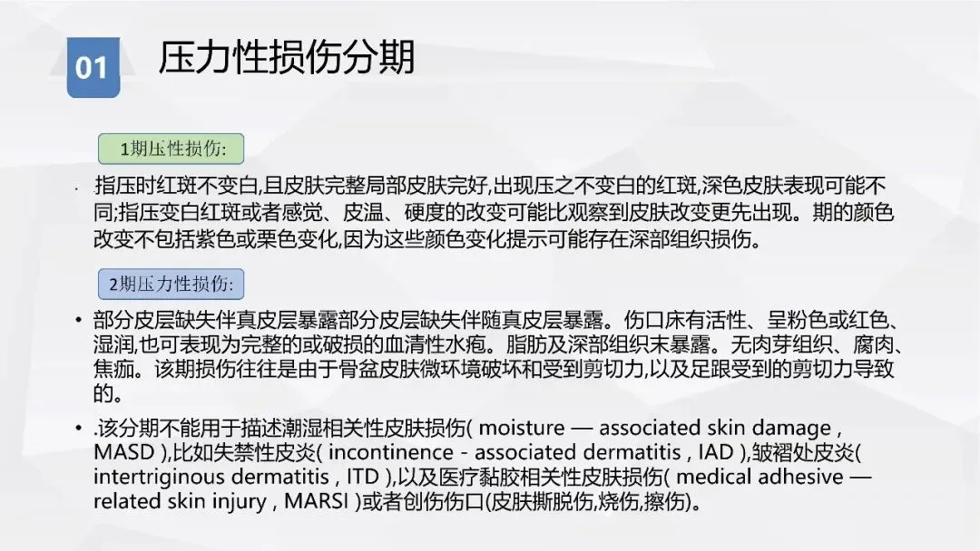 这套 PPT 涵盖四大核心模块:概念与分期、病因与危险因素、治疗与护理、预防措施。详细讲解 NPUAP 最新分期标准、内外因分析、Braden 等风险评估、各期伤口处理、敷料选择、皮肤护理、体位安置、营养支持及 “六勤一好” 预防规范。内容贴合临床实操,逻辑清晰,重点标注明确,既有理论依据,又有落地流程。