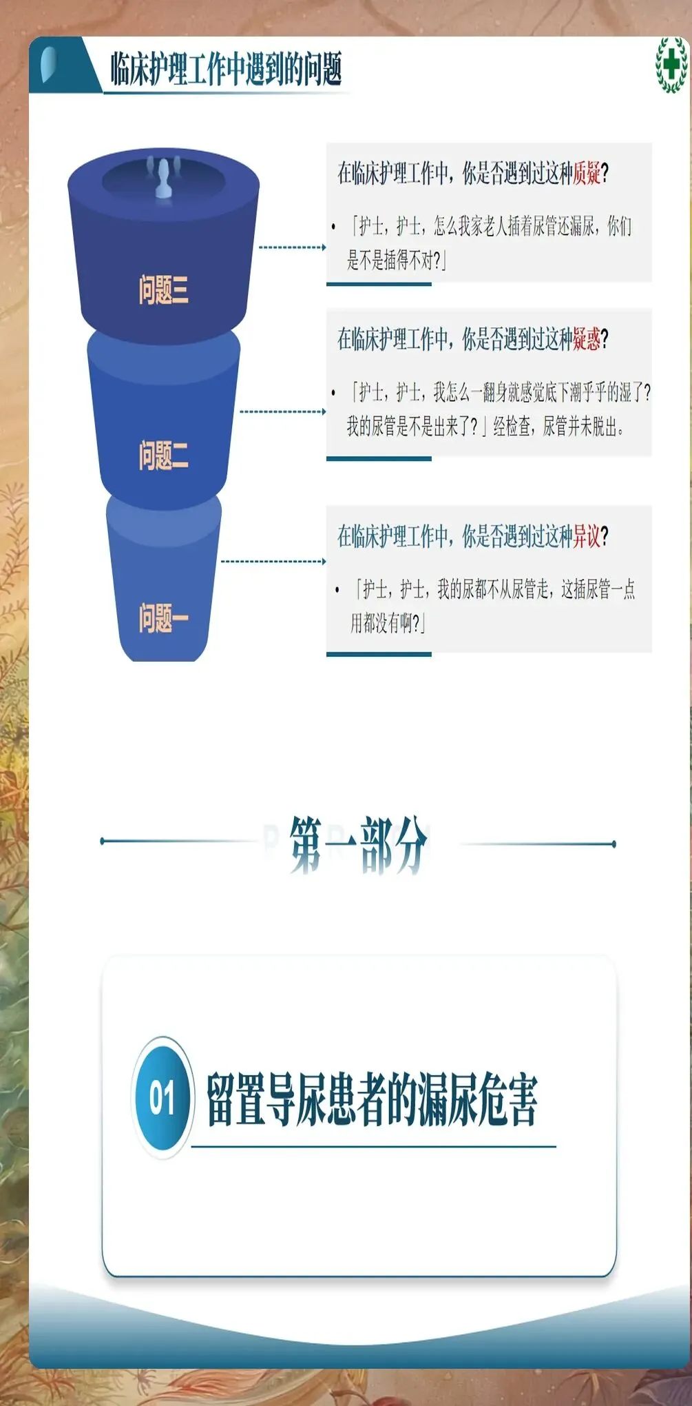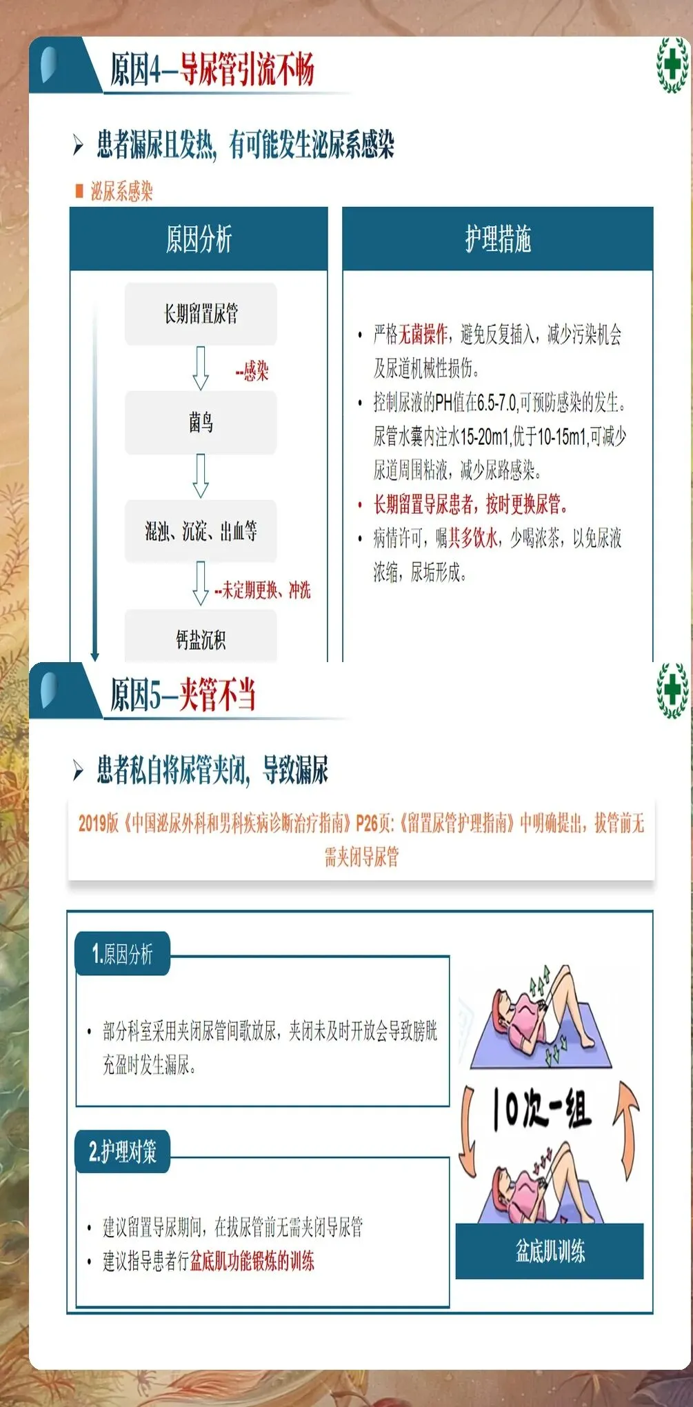 针对上述漏尿原因,需要制定系统性的护理对策,从预防到处理形成闭环管理。