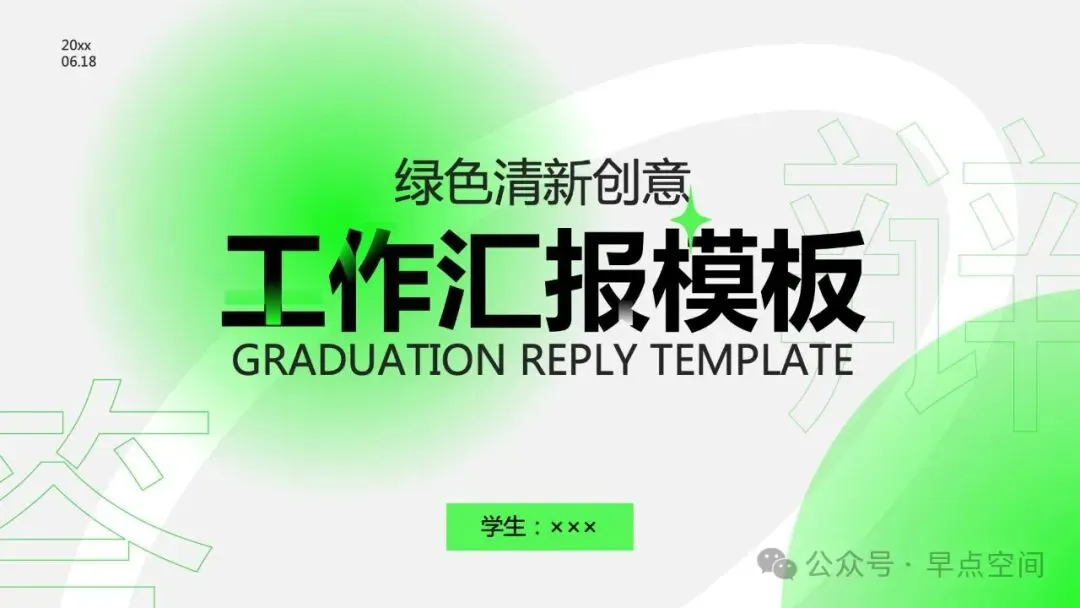今天给大家带来了20页绿色商务工作汇报创意毕业答辩PPT模板【0389期】