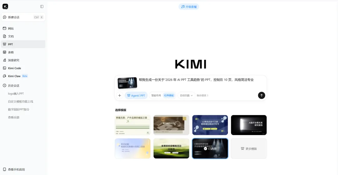 Kimi 更适合中文内容型 PPT。 它的优势在于表达比较自然,而且更容易通过提示词去约束风格、页数和页面节奏。像年终总结、项目复盘、读书分享这种内容,很多人需要的不是一份特别花哨的 PPT,而是一版结构清楚、语言顺、后续也方便继续改的初稿。在这一点上,Kimi 的体验会比较稳。