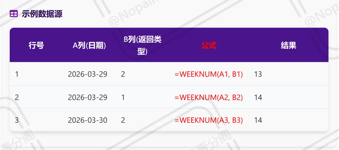 基本语法:=WEEKNUM(serial_number, [return_type])