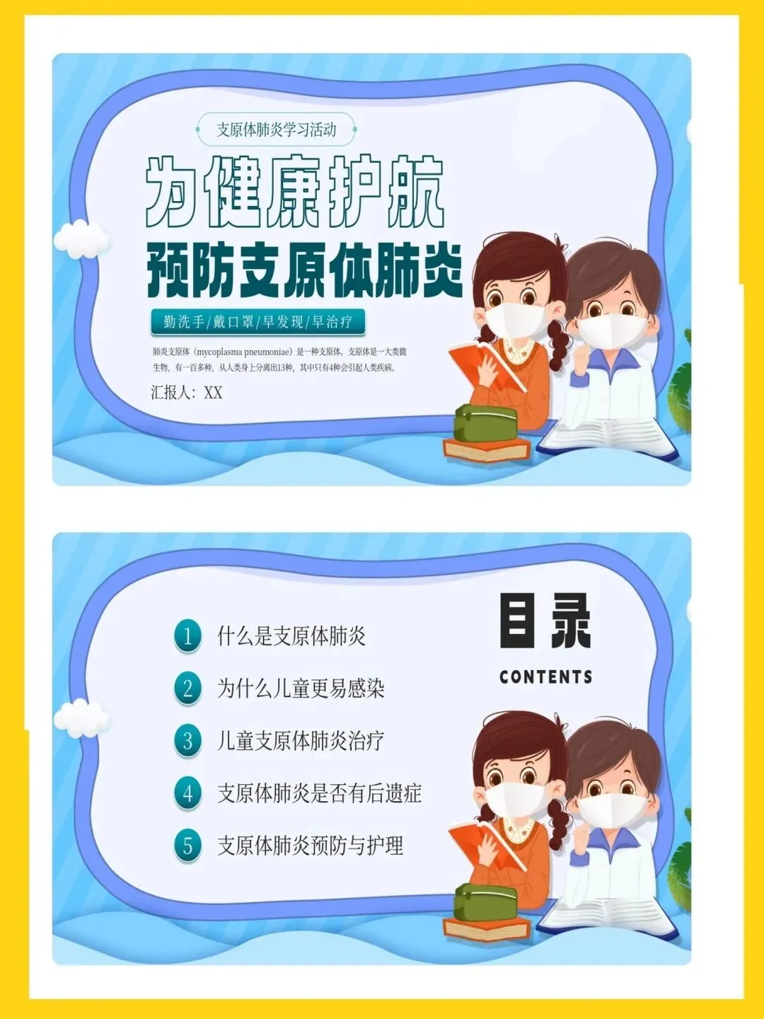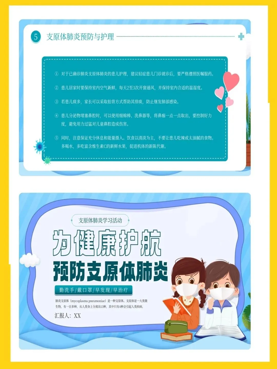 🍉名称:预防支原体肺炎ppt模板课件模板
