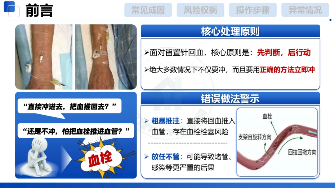 临床中常遇到留置针回血,大家纠结:冲进去怕血栓,不冲怕堵管。