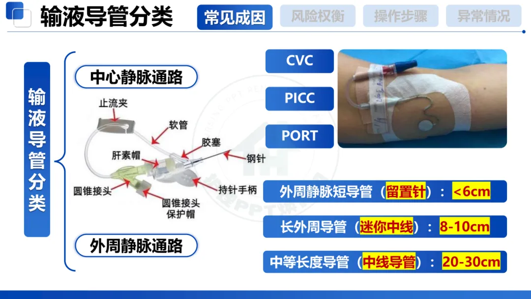 输液导管分类有中心静脉通路和外周静脉通路两大类。