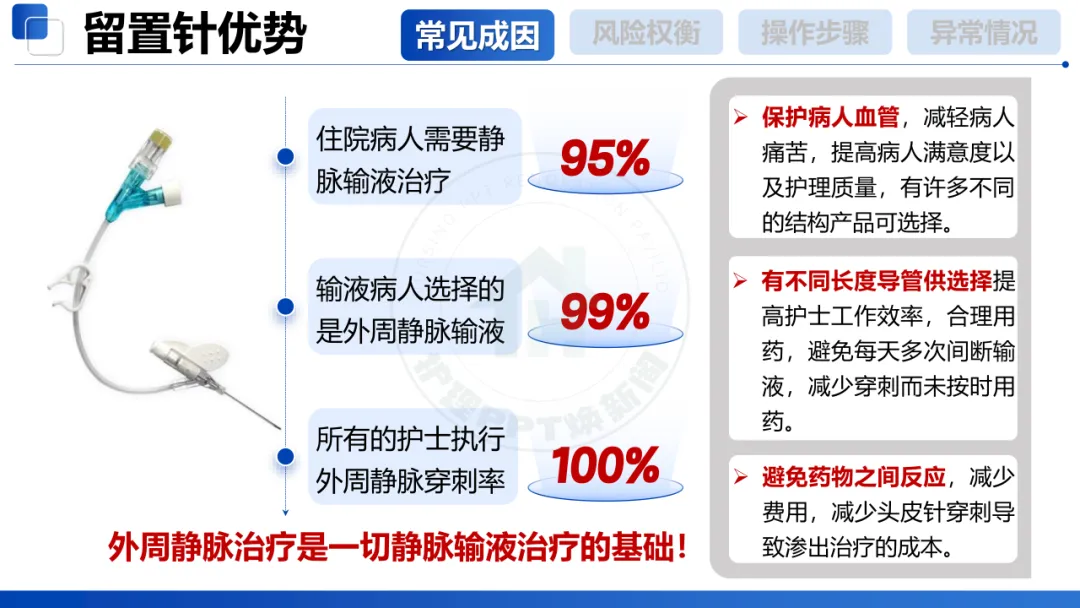 外周静脉留置针可减少反复穿刺、保护血管、提高患者舒适度,是静脉输液治疗的基础✅。