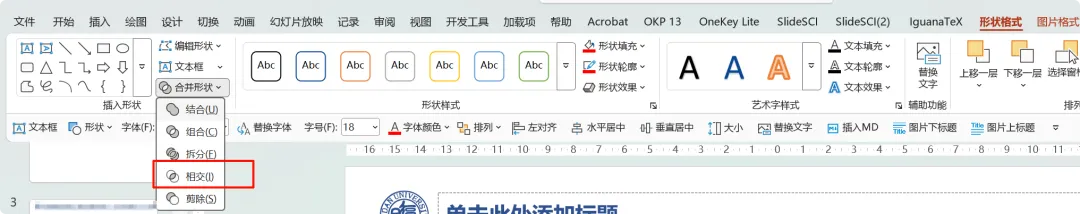3. 「形状格式」→「合并形状」选择相交,得到根据矩形形状裁剪的图