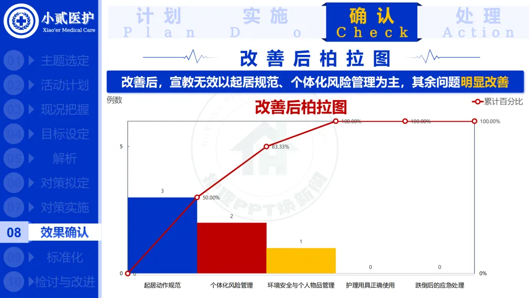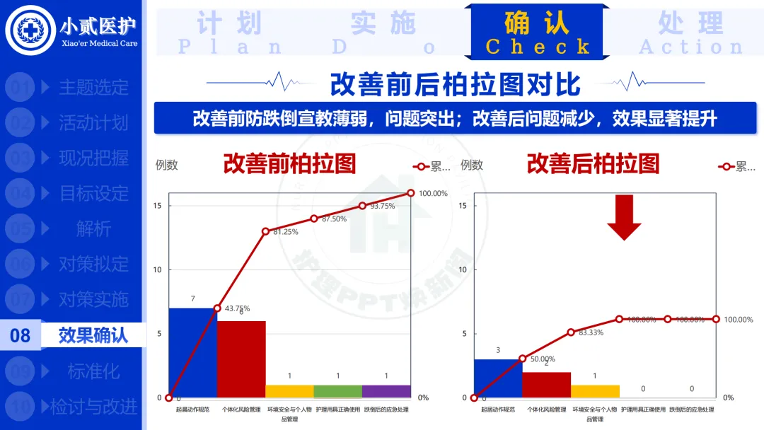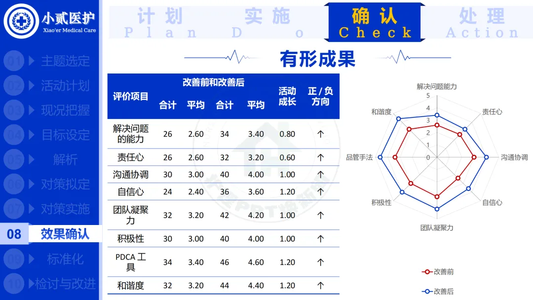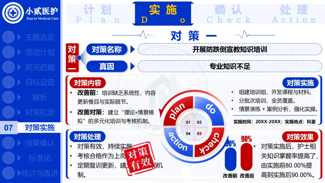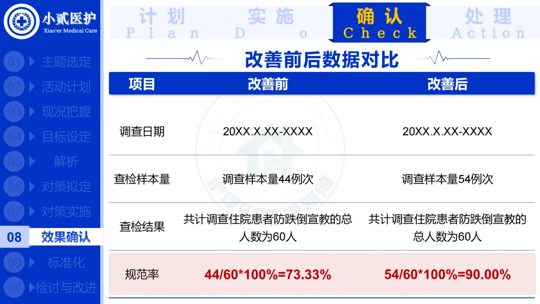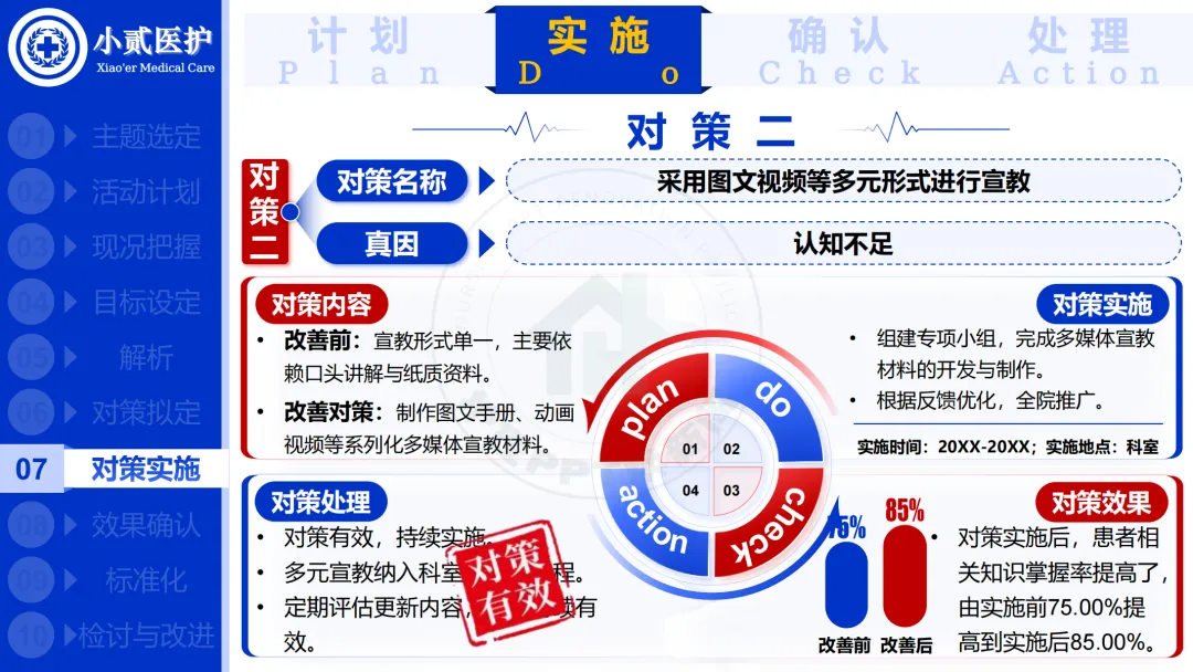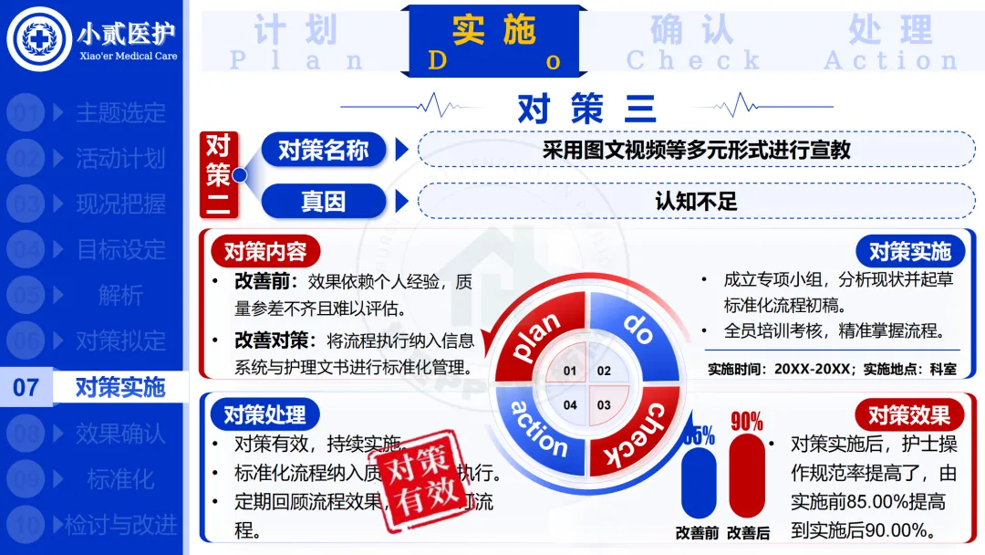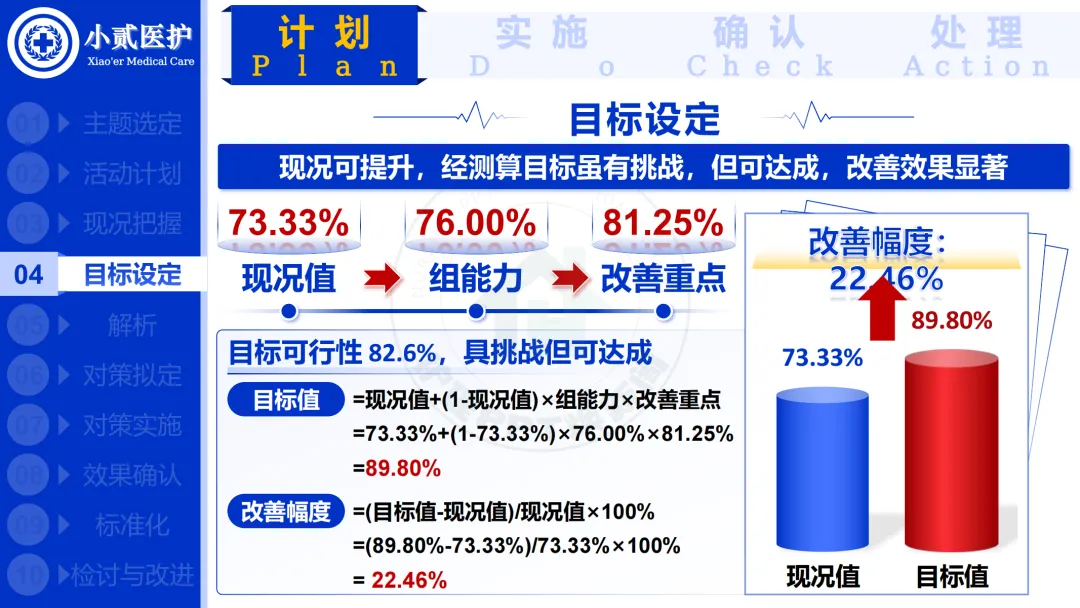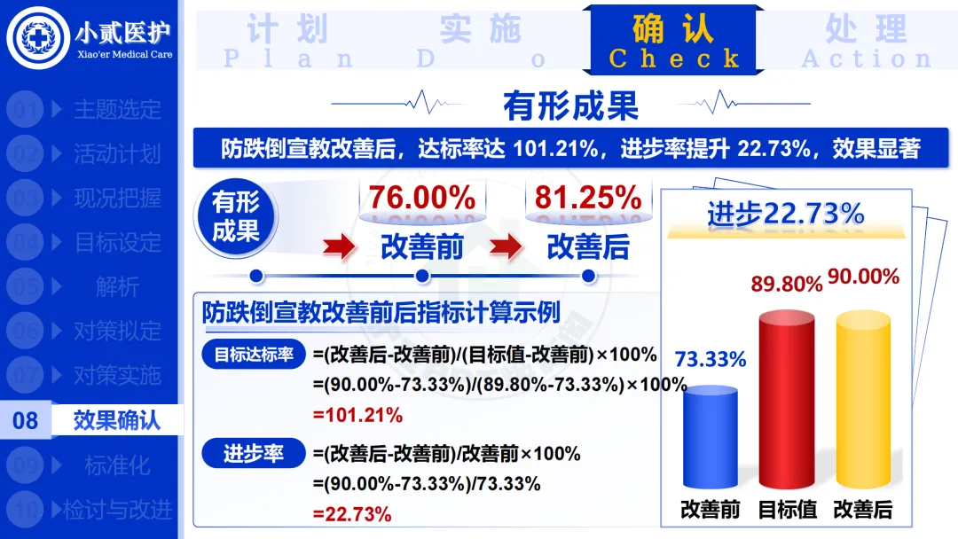 改善后宣教有效率达 90%,超目标值,相较于改善前的 73.33%,实现大幅提升。