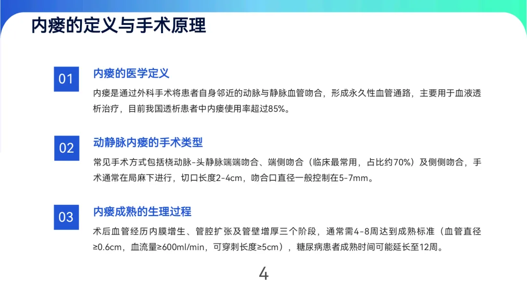 通过以上综合措施,可有效促进内瘘成熟,降低并发症,保障透析治疗顺利进行。