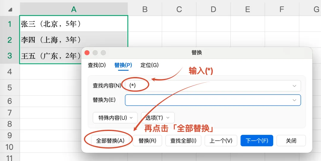 二有没有小伙伴跟我一样,在做员工信息表的时候,看到下面这种格式就头大?把括号和里面的内容删掉,100行数据一个个删?删到怀疑人生!