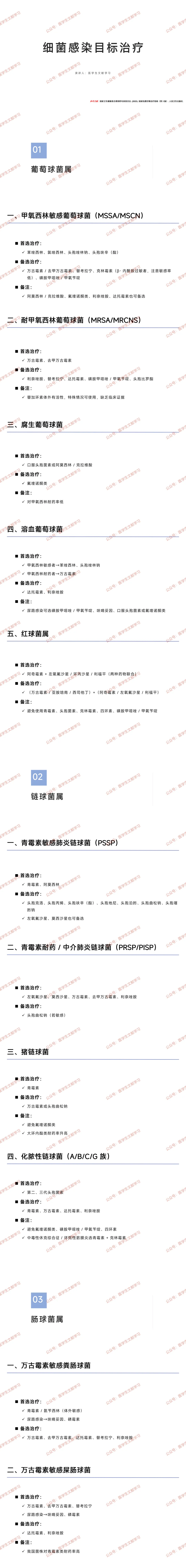 葡萄球菌:甲氧西林敏感用 β- 内酰胺类,耐药用万古霉素 / 利奈唑胺