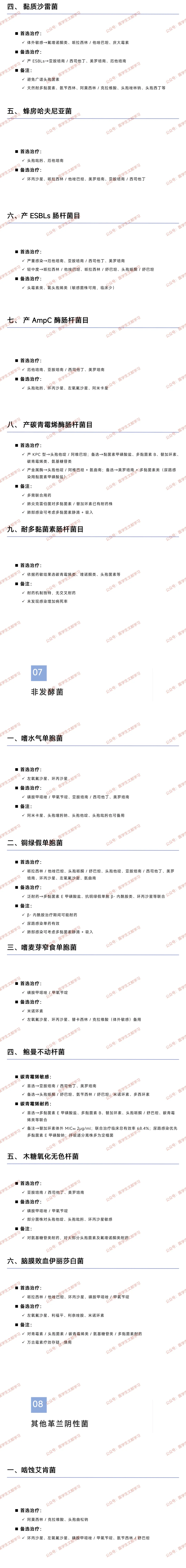 黏质沙雷菌首选:氟喹诺酮类、哌拉西林 / 他唑巴坦、庆大霉素备选:碳青霉烯类