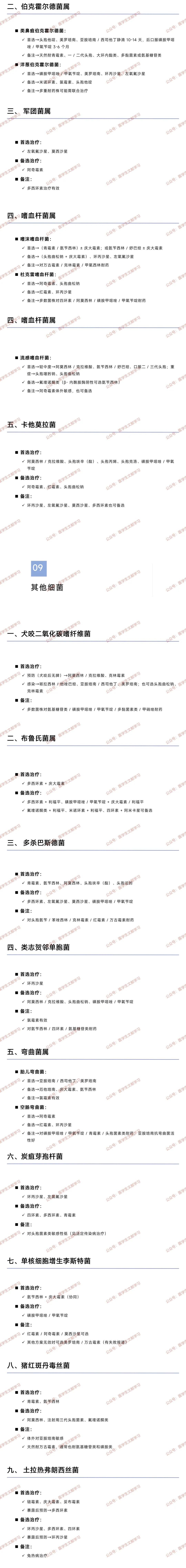 特殊细菌:布鲁氏菌、李斯特菌、炭疽均需按指南联合或首选特定药物