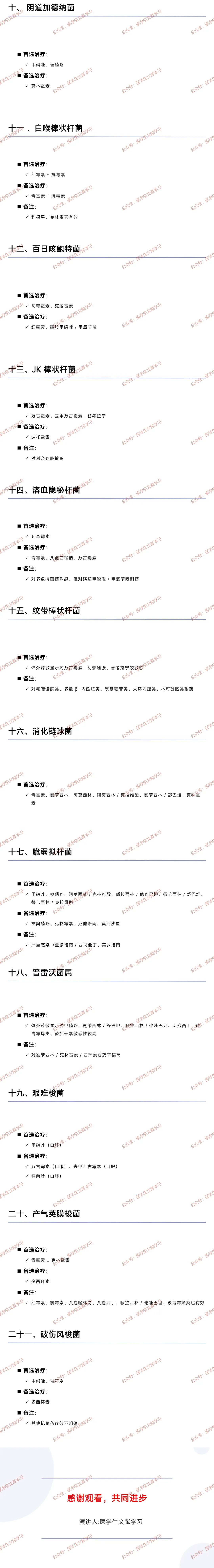 厌氧菌:脆弱拟杆菌首选甲硝唑,艰难梭菌口服甲硝唑 / 万古霉素