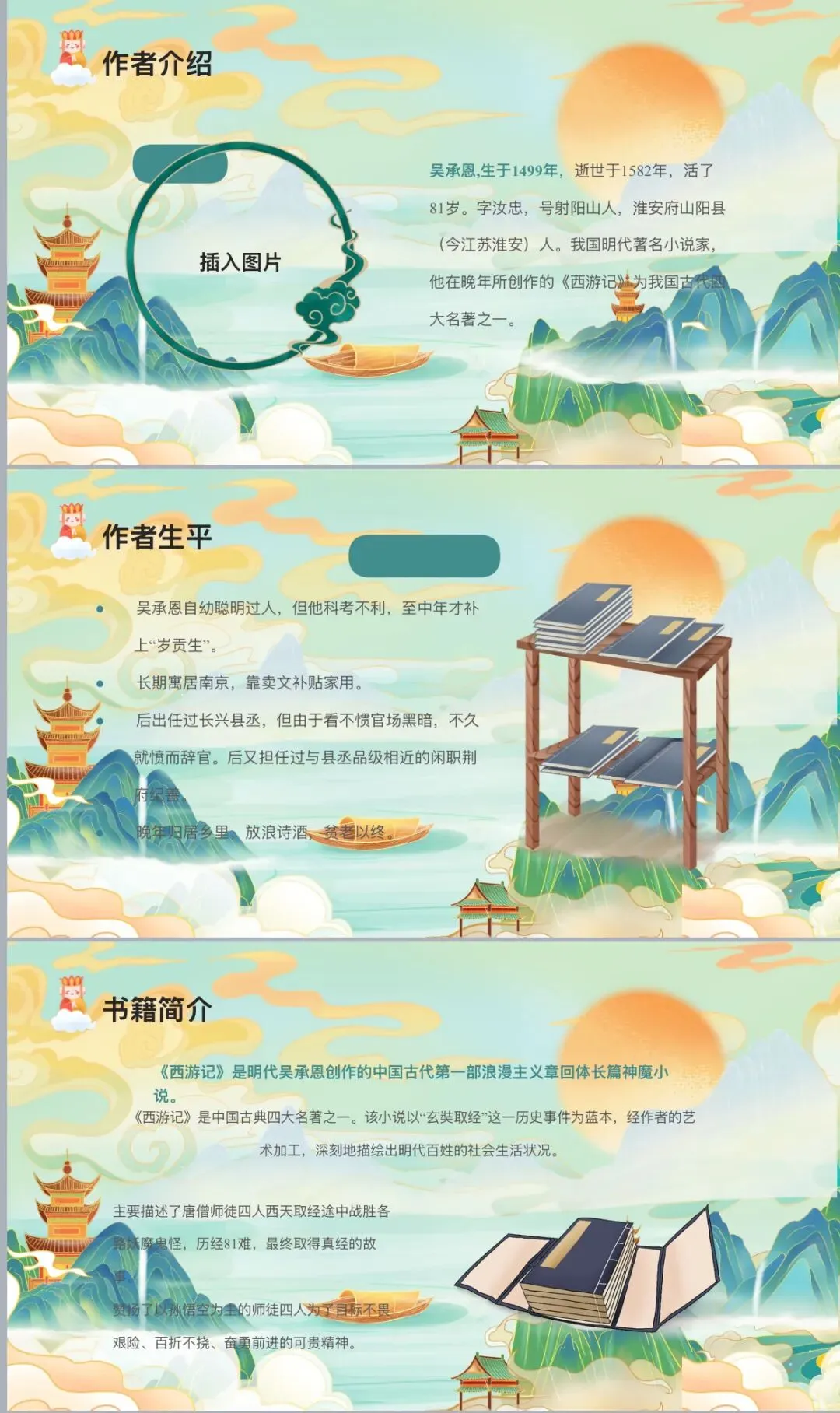 大家好!今天,我很高兴能够在这里和大家一起分享中国古典四大名著之一 ——《西游记》。