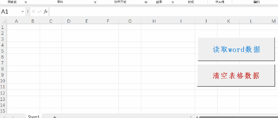 如上图,这一段比较简单,因为咱们前面的代码在读取数据时,在后台打开了word文件,本段的主要目的是读取完word数据后,关闭后台的word程序,并弹出“完成!”的对话框。2、清空表格数据按钮