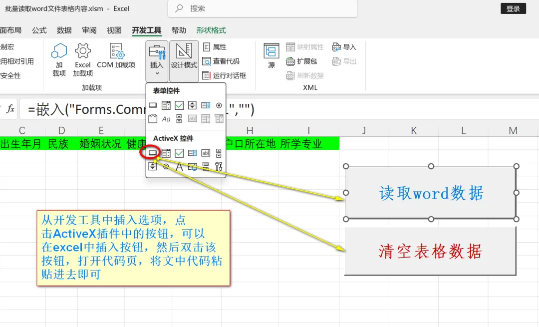 - 格式适配:该excel文件需另存为.xls 或.xlsm 格式(.xlsx 不支持宏),且 Excel 与 Word 需放在同一路径,否则代码无法生效;