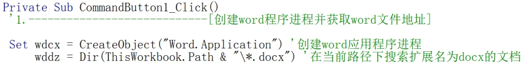 这段代码很简单,主要是在后台创建word应用程序,搜索当前路径下的所有word文件。第2部分:对excel表第一行赋值