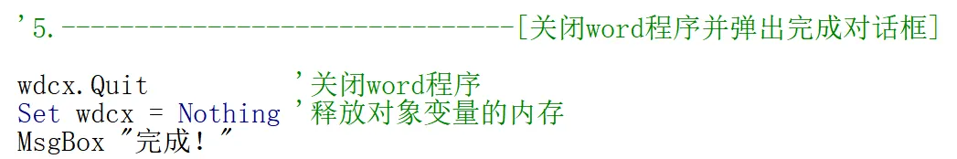 咱们为什么要把3、4代码放在一起讲解呢,这是因为他们是循环嵌套结构,用DO循环嵌套了For循环,DO循环的目的是打开本地所有word文档,For循环的目的是将打开的word文件中的所有表格数据读取到excel表中,如下图:第5部分:关闭word程序并弹出完成对话框