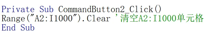 如上图,这一段就比较简单了,主要是清空A2:I1000单元格的数据。四、总结