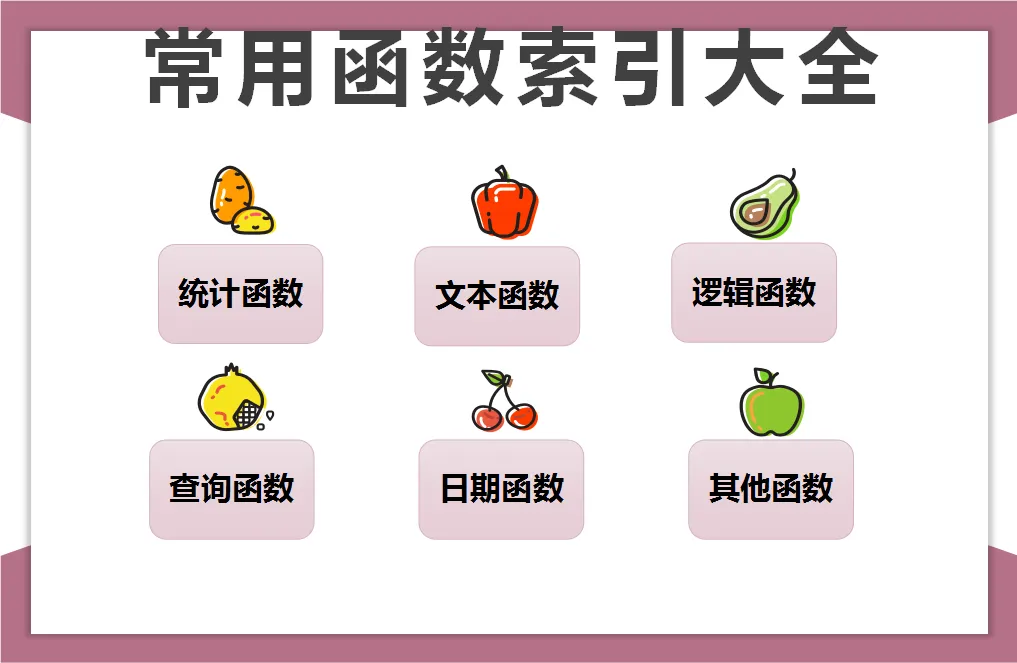 今天分享这套Excel常用函数索引大全,建议Excel函数会的不多的朋友,人手一份!
