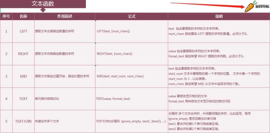 文本函数是用于对文本数据进行处理和提取的函数,可用于在文本数据中查找或提取特定字符、字符串、单词、行等等,并对它们进行格式化、合并、拆分、替换等操作。财务、行政、人事等岗位都会用到这些函数。