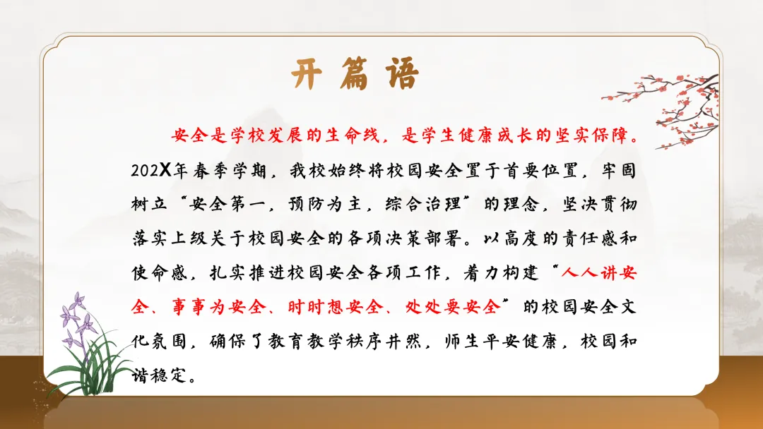 【ppt+发言稿一套】筑牢平安基石 护航阳光成长——202X年春季第二学期学校安全工作总结