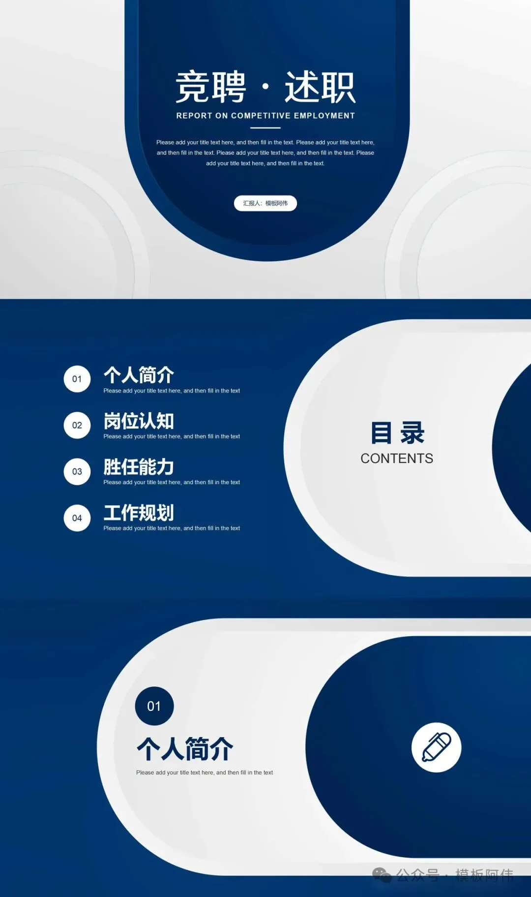 PPT模板框架完整,适用场景:岗位竞聘/晋升报告/竞聘述职