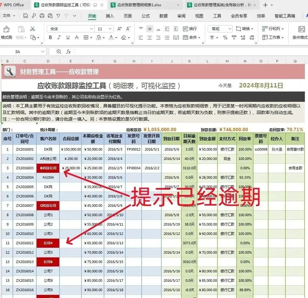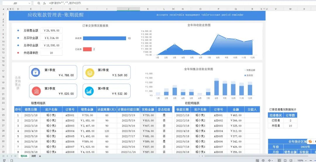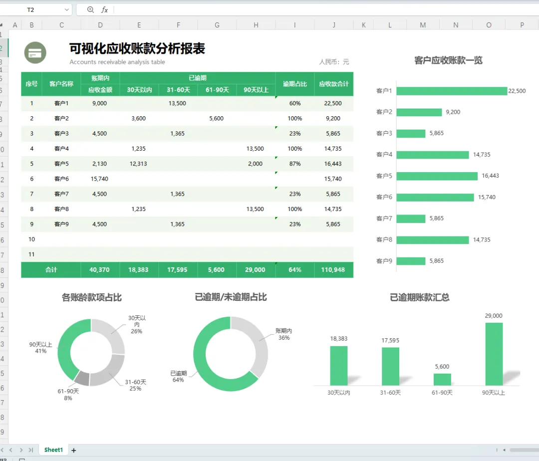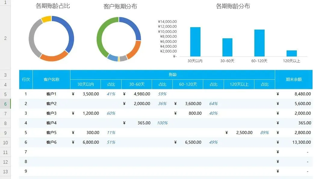 财务必存!这套Excel应收账款明细表模板(带公式),自动计算账龄+坏账计提表,财务套用月末不加班!