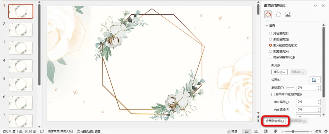点击「应用到全部」按钮后,背景图片就被全部替换完毕啦!