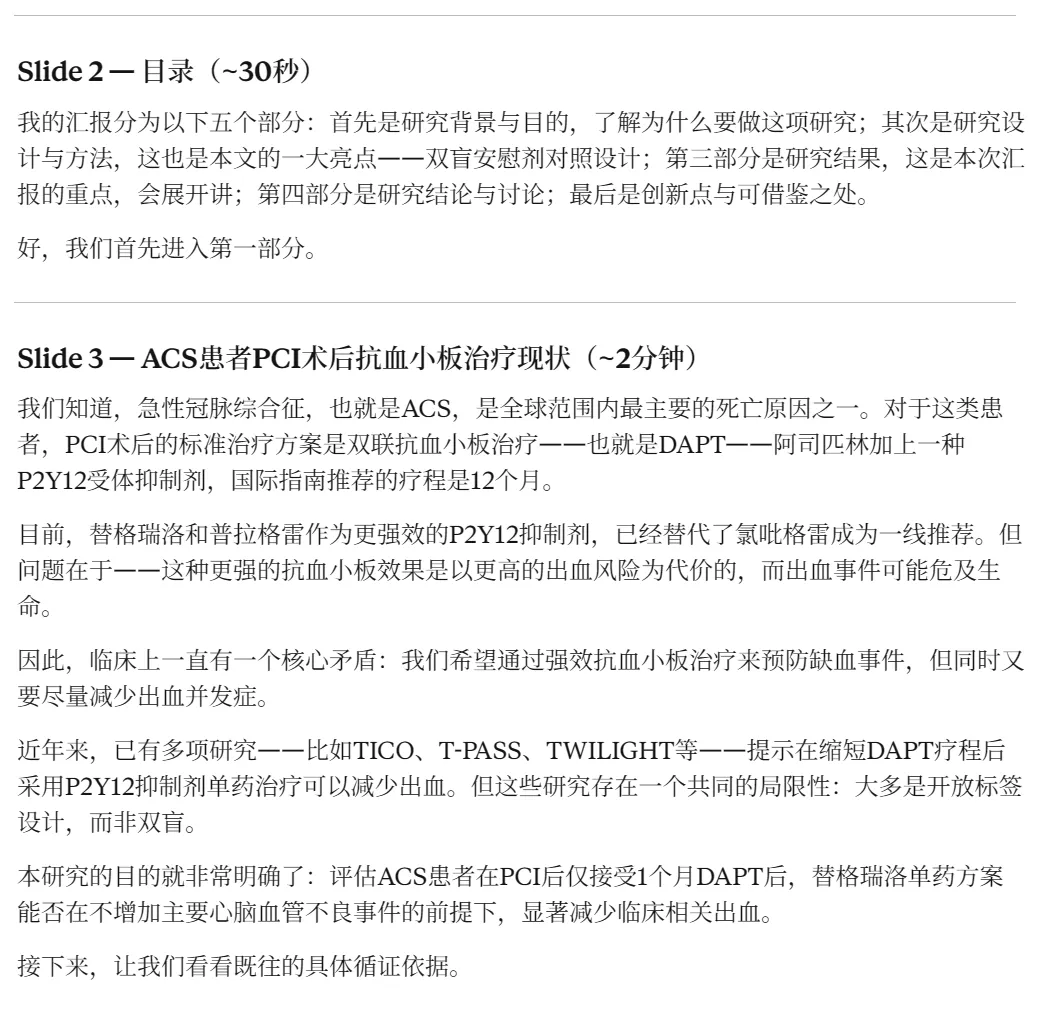 既有对应单页 PPT 的内容的完整陈述,还有承上启下的语言,让你整个汇报流畅、逻辑清晰。
