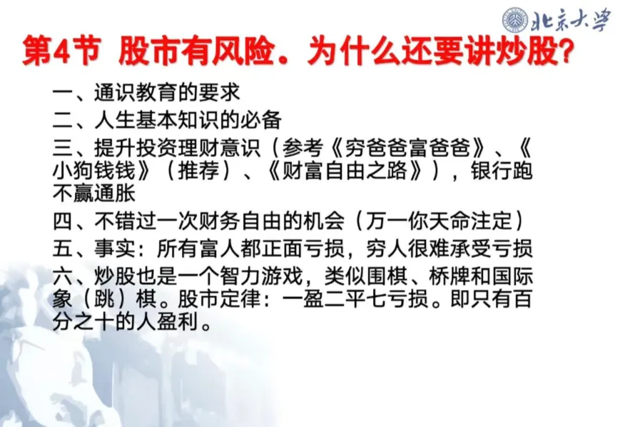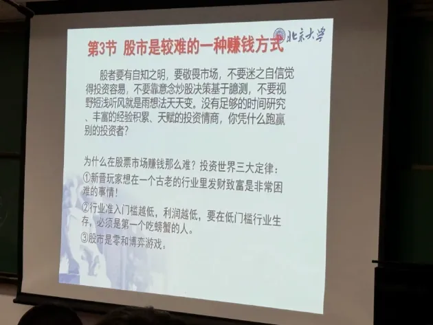 很多人会问:北大是顶尖学府,学生都很优秀,为什么要开"炒股挣钱"这种讲座?