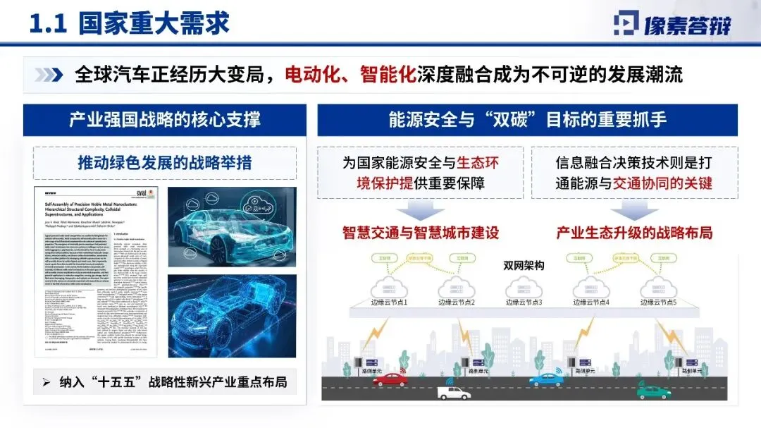 全球汽车电动化、智能化深度融合,信息融合决策是打通能源与交通协同的关键。项目被纳入“十五五”战略性新兴产业重点布局,支撑产业强国与绿色发展。