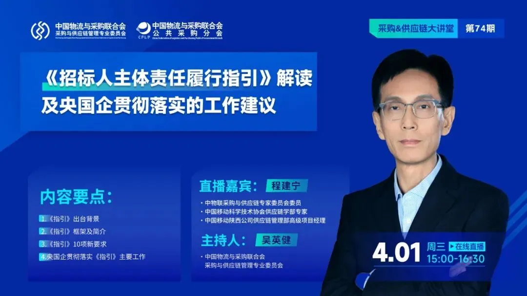 2026年4月1日下午3点,由中国物流与采购联合会公共采购分会和采购与供应链管理专委会联合主办的“采购&供应链大讲堂”第74期,邀请了