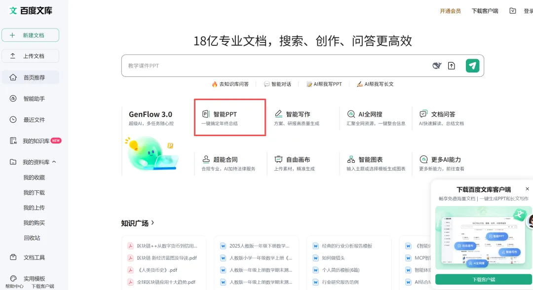 网址:https://wenku.baidu.com/(登录搜“智能PPT”)